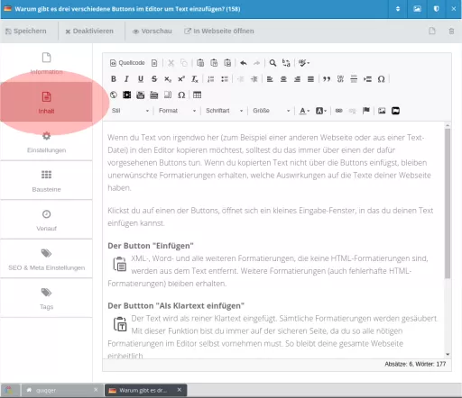 2. Dort findest du dann ganz oben in der Leiste über den Buttons „Speichern“, „Aktivieren“ und „Vorschau“ rechts ein kleines Icon mit zwei Pfeilen, welche nach oben und unten zeigen.